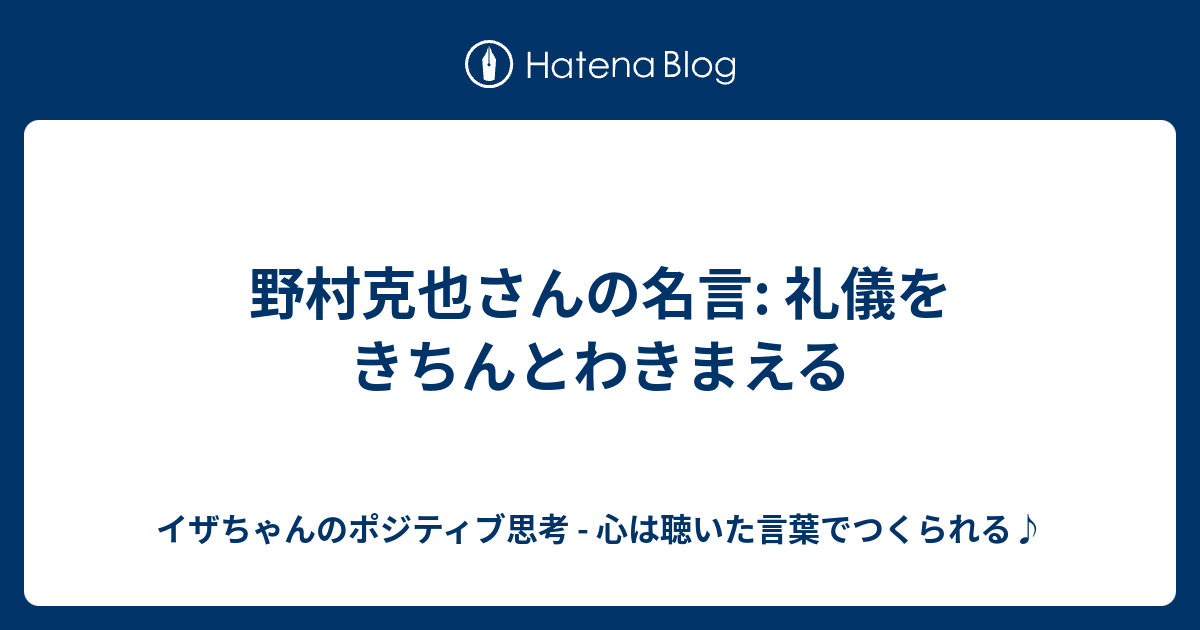 野村克也さんの名言 礼儀をきちんとわきまえる イザちゃんのポジティブ思考 心は聴いた言葉でつくられる